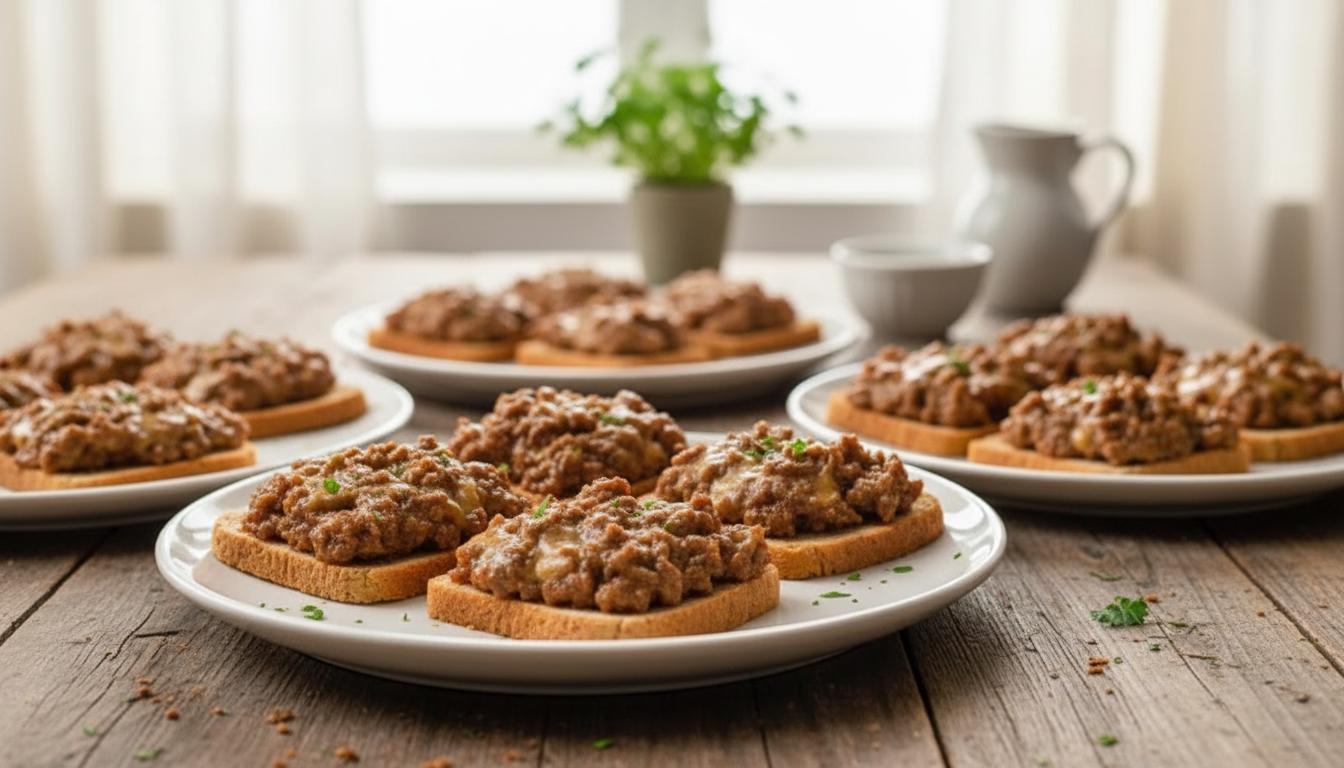 One of the most practical and genuinely useful aspects of this recipe is how exceptionally well it lends itself to advance preparation. Once assembled — the meat and cheese mixture spread onto each slice of bread and arranged on a baking sheet — the hanky pankys can go directly into the freezer rather than the oven. Once frozen solid, they transfer easily into a zip-top freezer bag and keep for up to two months without any loss of quality. On the day of your gathering, they go straight from the freezer into a hot oven, adding just a couple of extra minutes to the baking time. The result is a warm, bubbling, freshly baked appetizer that required almost no day-of effort whatsoever. For anyone who entertains regularly or hosts gatherings where advance preparation is essential, this make-ahead quality alone makes hanky pankys worth adding to the permanent rotation.