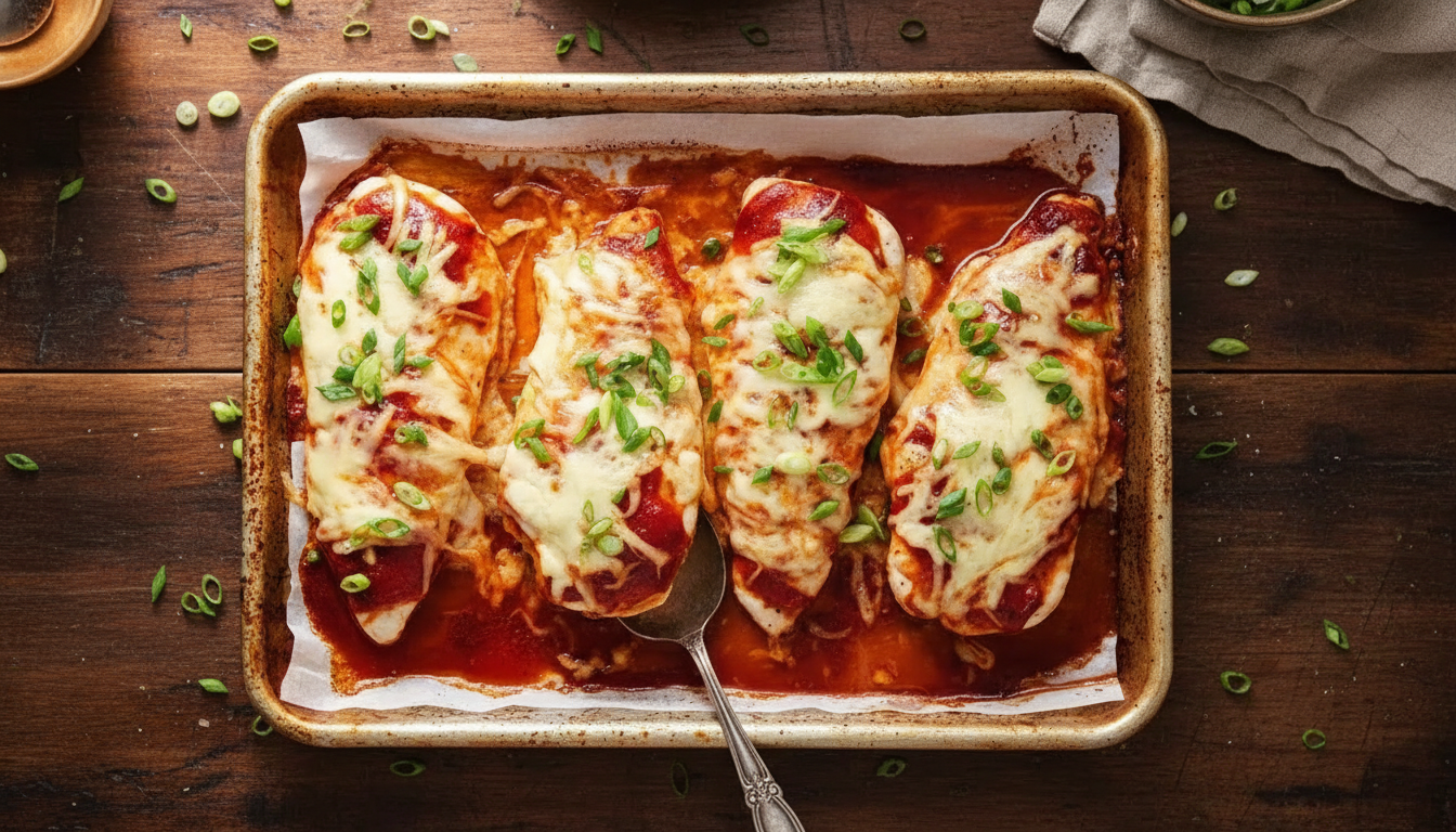 A hot oven is the other essential element. At 425°F, the chicken cooks quickly and the barbecue sauce caramelizes slightly at the edges, adding a deeper, slightly charred quality that makes the dish even more complex and satisfying. Once the internal temperature reaches 160°F — which takes only eight to ten minutes with properly pounded chicken — the pan gets tented with foil and left to rest for five minutes. This resting period allows the residual heat to gently bring the temperature up to the safe serving point of 165°F while also giving the juices time to redistribute throughout the meat, keeping every bite moist and tender rather than dry and squeezed out.